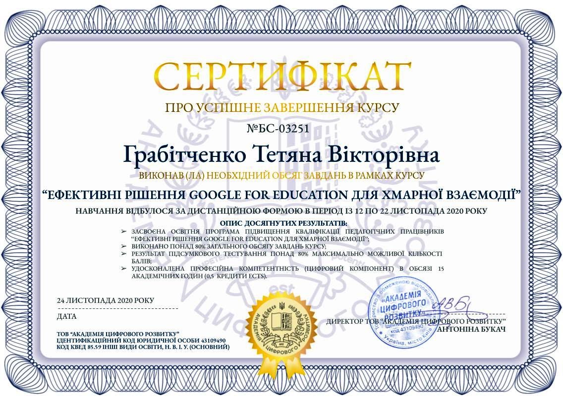 Грабітченко Тетяна ВікторівнаНапрями підвищення кваліфікації: