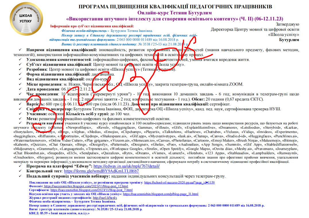 Онлайн-курс "Використання штучного інтелекту для створення освітнього контенту (Ч. ІІ)" (6-12 листопада 2023 р.)