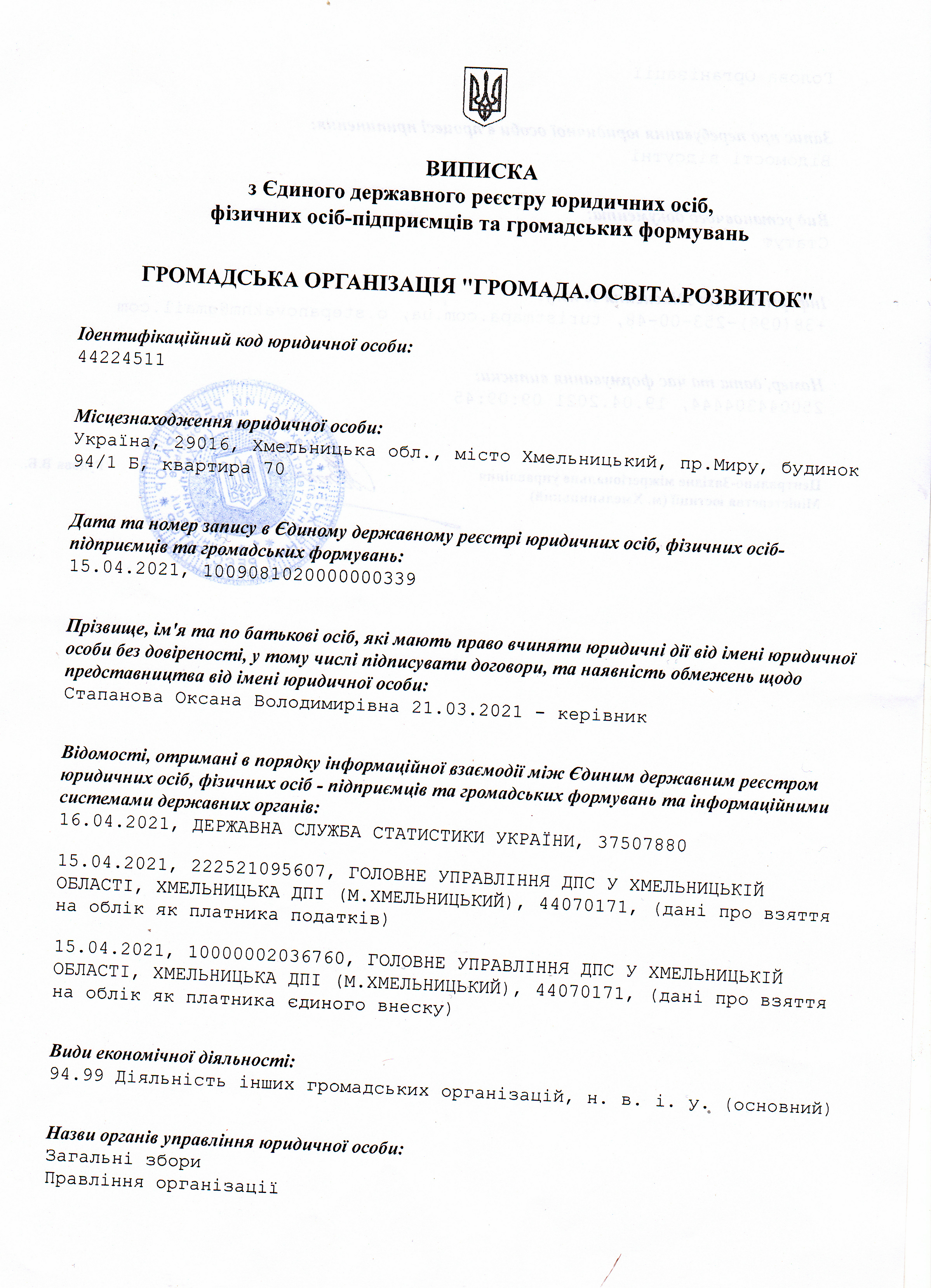 Код ЄДРПОУ або РНОКПП: