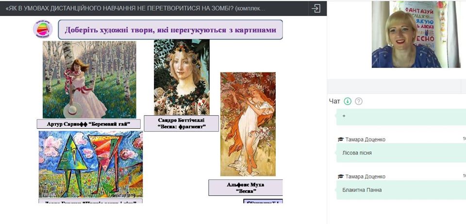 - вебінари (навчання за програмами підвищення кваліфікації)