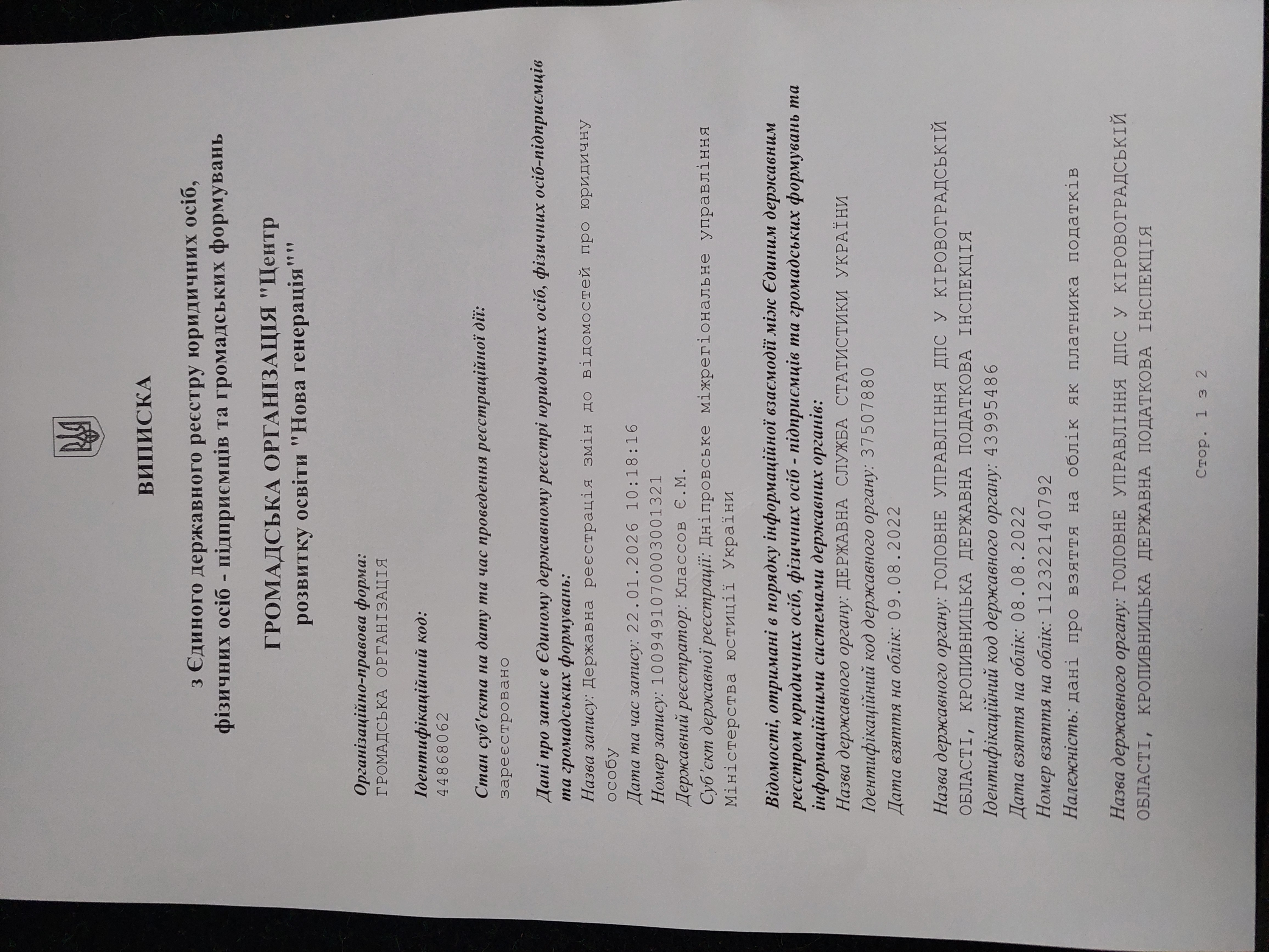 Громадська організація "Центр розвитку освіти "Нова Генерація""