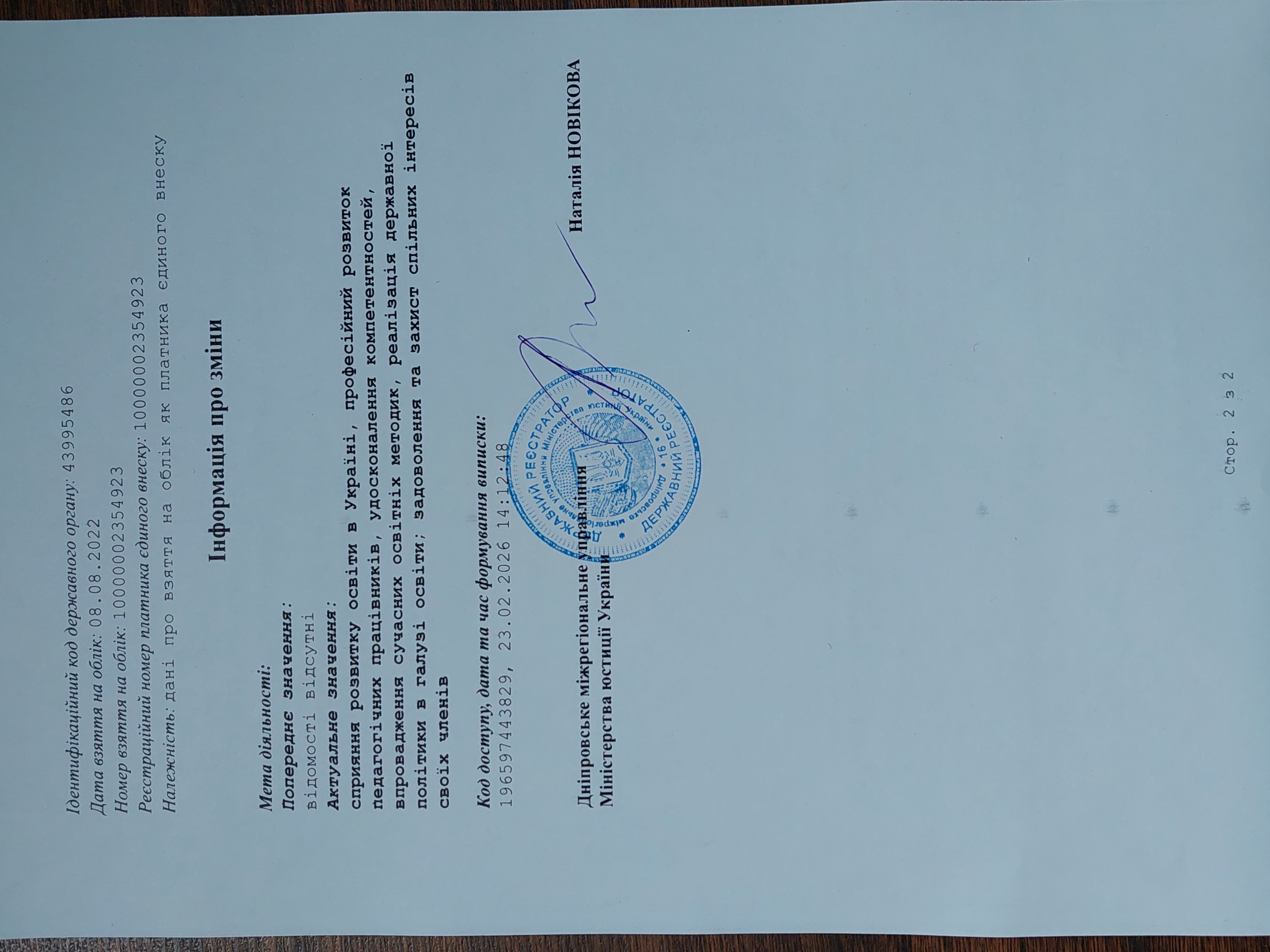 Суб'єкт підвищення кваліфікації: Громадська організація "Центр розвитку освіти "Нова Генерація""