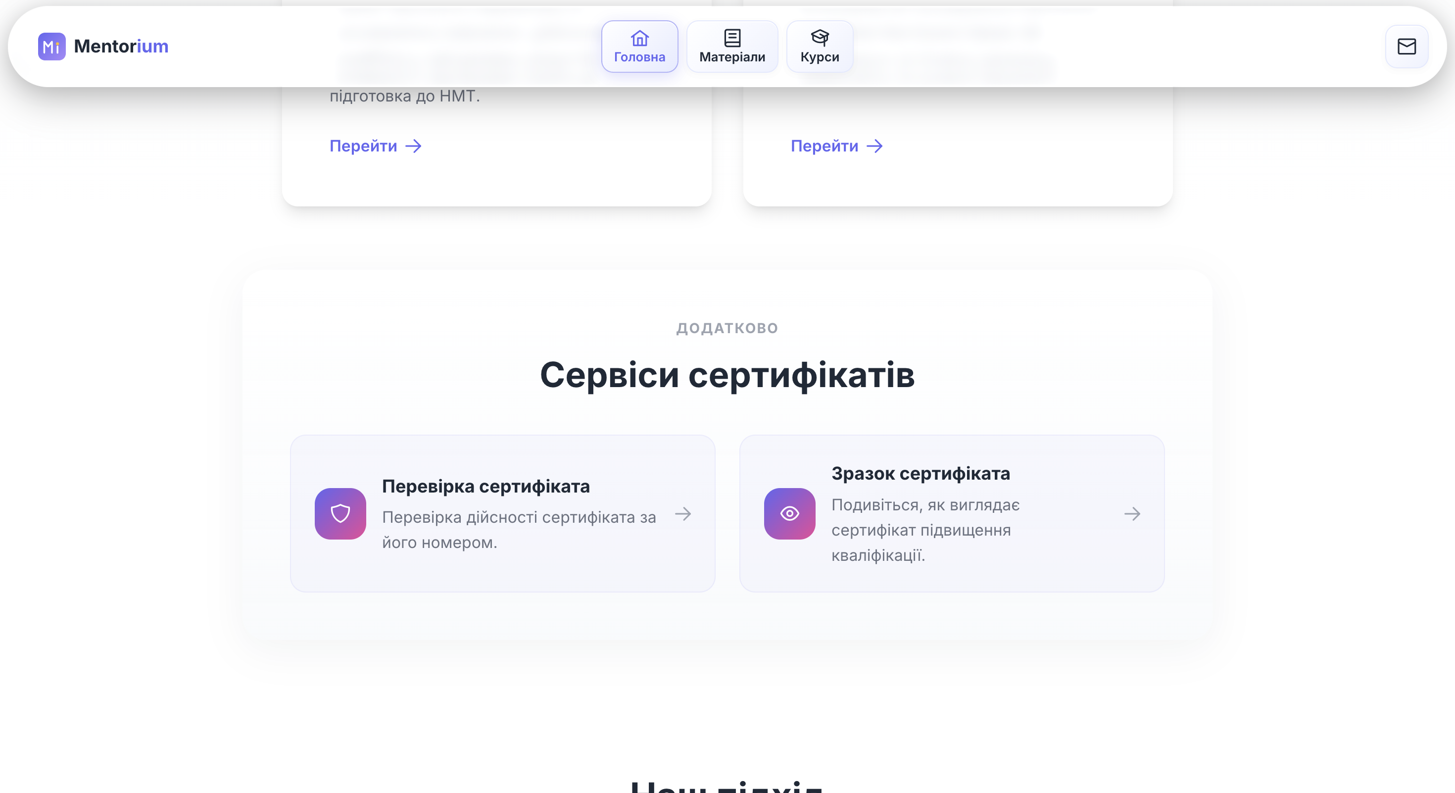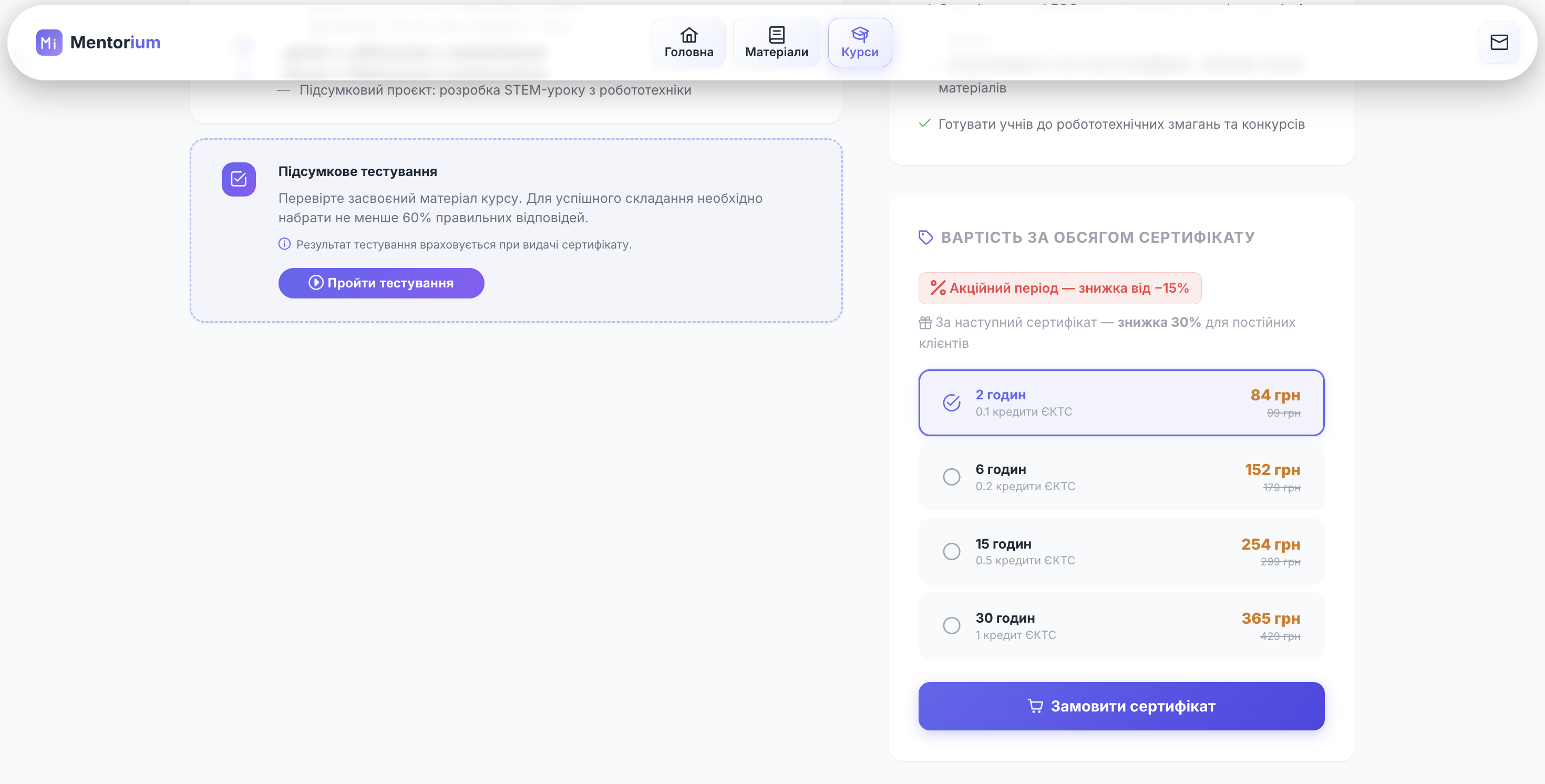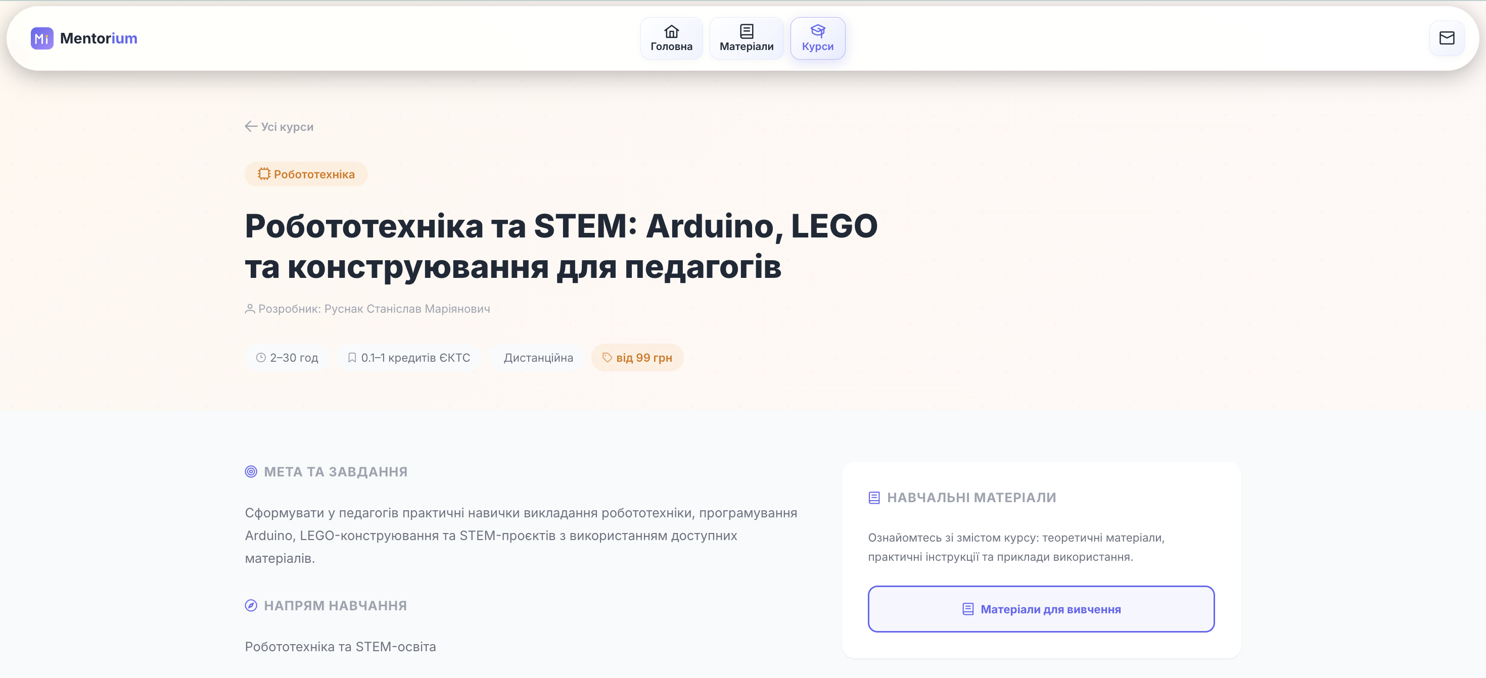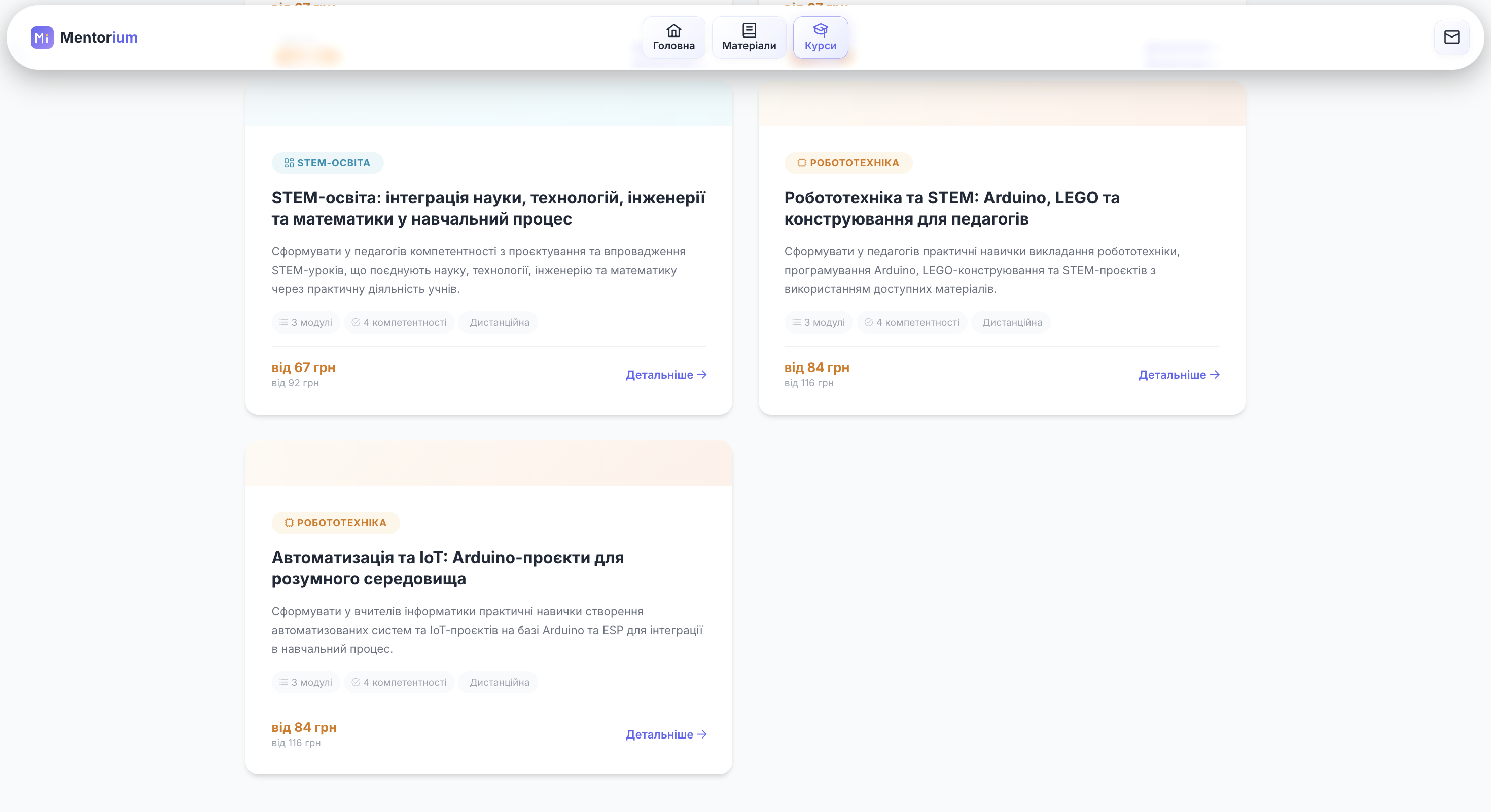 Mentorium — освітня онлайн-платформа для вивчення хімії та інформатики з різними рівнями складності (від базового до поглибленого), а також для підвищення кваліфікації педагогічних працівників у сфері цифровізації навчальних дисциплін та розвитку цифрової грамотності.